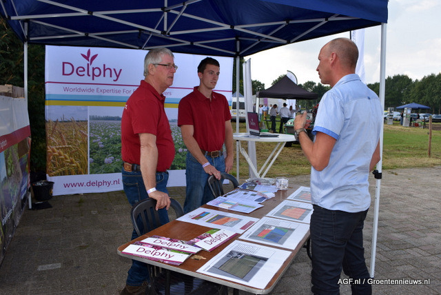 Bij Delphy geven Bert Aanan en Wim van Tilburg uitleg over het gebruik van foto's van de temperatuur en de gewasontwikkeling op een perceel.