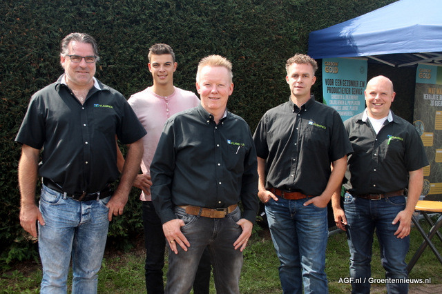 Met deze club kun je een mooi plantje realiseren. Op de foto Dennis Joosten, adviseur, Dorus Verhoeven van Legro, Niels Goossens van Goosens Flevoplant en Albert Dortmans van Orgapower.