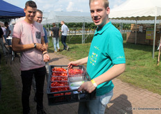 Tim van de Hurk doet mee aan de smaaktest voor de lekkerste aardbei, ZLTO ging bij iedereen langs.