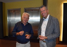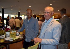Barend Lobker van Vortus Greenhouse Consultants met dagpresentator Maurice Wubben op het 35-jarig jubileum van Vortus Greenhouse Consultants