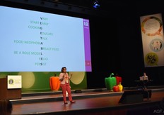 Louise Codling van het World Cancer Researh Fund sprak over de rol van de overheid en hoe de organisatie onderzoekt en in een database monitort wat werkt en wat niet werkt in de beweging van mensen naar gezondere keuzes.