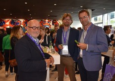 Opvallend: Steef van Adrichem van Anco Pure Vanda, gespecialiseerd in orchideeën maar nooit te beroerd om te kijken hoe de AGF-sector zaken aanpakt. Op de foto met Arco Sonneveld van Send Uitzendbureau en Ben van der Burg van Van der Burg, aloe vera producent.