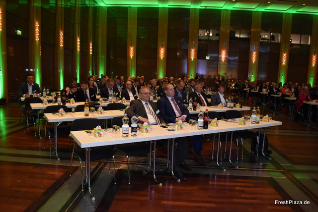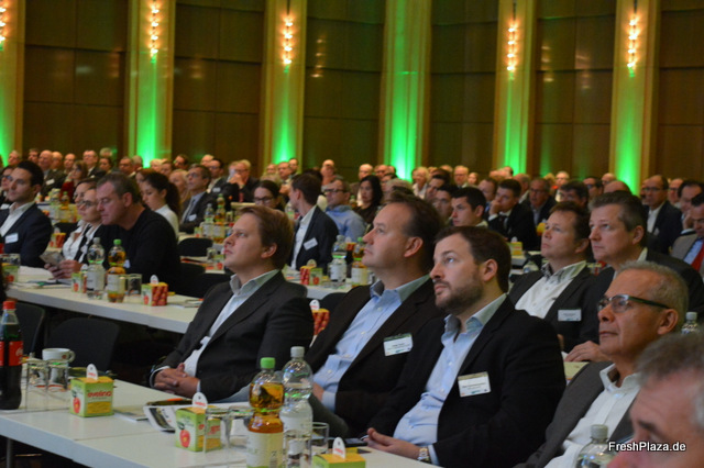 Kaasten Reh, Jörg Pretzel en Hans Christoph Behr (vlnr) openen het Deutscher Obst und Gemüse Kongress 2017.