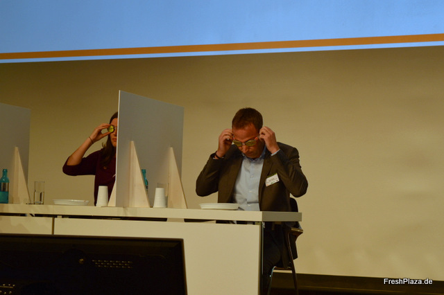 Andreas Allenspach van Coop Zwitserland, Marc Beckmann van Godeland en André Weichert van van Weichert Fruchtimport) gebroederlijk naast elkaar.