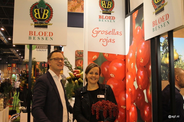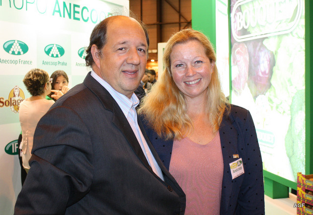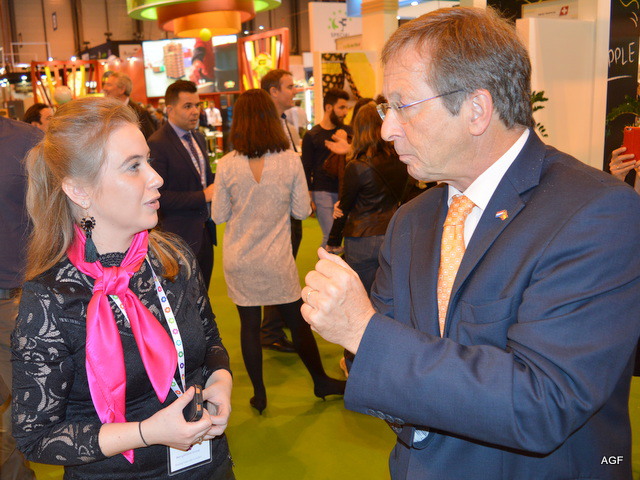 Lisan van Koppen van 4Fruit in de stand van Anecoop met haar oudste leverancier (letterlijk en figuurlijk): Gegorio Peralta Carrasco