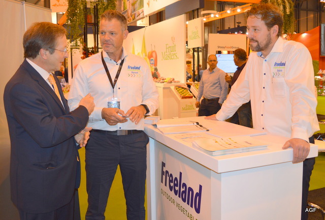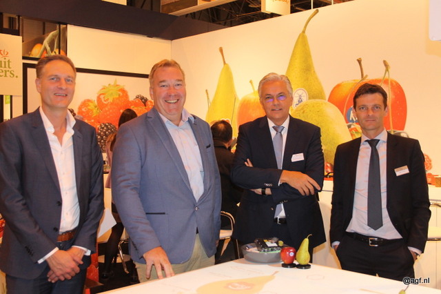 Paul Kingma en Sjaak Smeding (Smeding Groenten en Fruit) en Leonard Kampschoer en Fabien Dunant van Fruitmasters.
