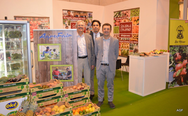 Frank Vermeersch van AgroFair, Gianluca Schassi en Nicola Bottazzo presenteerden hun Solidale Italiano. Een Europees ‘Fairtrade’ programma waarin producten op een eerlijk manier geteeld en verhandeld worden. Dit houdt in dat er gewerkt wordt met goede arbeidsomstandigheden waar ook maatschappelijke ‘uitvallers’ intensief bij betrokken worden. Het is een sociaal project waarin biologisch wordt geteeld. Telers hebben zich verenigd in de coöperatie BIA.
