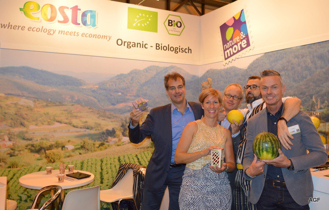 Gert Kogeler, Jessica Bouter, Michael Wilde, Ricardo Montoya en Cor Berkhout van Eosta. Eosta stond op een strategische plek op de beurs. Dit bedrijf dat groot is in biologische handel heeft duurzaamheid hoog in het vaandel staan. Een voorbeeld is het gebruik van Natural Branding. Besparen op verpakkingsmateriaal door product informatie rechtstreeks op het product te laseren. Verpakkingsmateriaal is zoveel mogelijk gemaakt uit duurzame materialen zoals plantaardige resten van suikerriet dat volledig composteerbaar is. Het eigen label is ‘Nature & More’.
