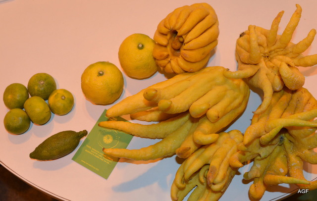Terra Citrus, Dr Younes Tazi toonde verschillende speciale producten zoals de Yuzu, Sudachi, Caviar lemon en Buddha’s hand. De laatste is wel een heel bijzonder gevormde vrucht waarbij decoratie en gebruik van de schil centraal staan.