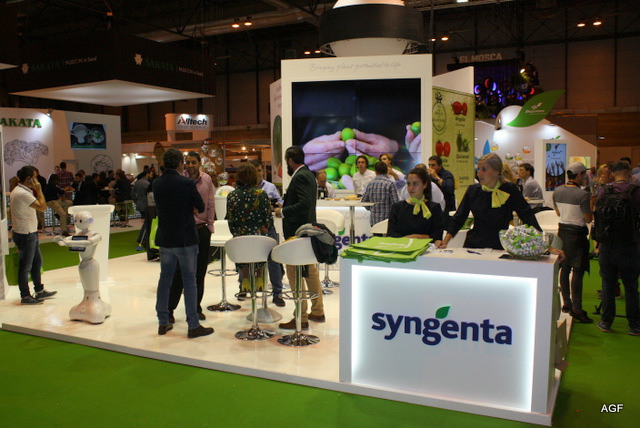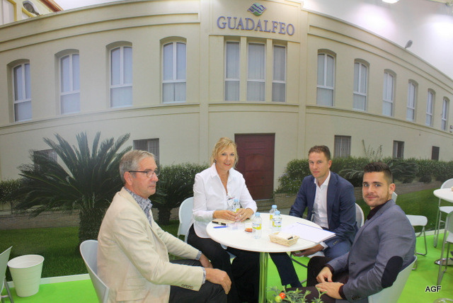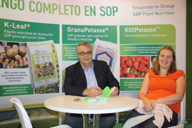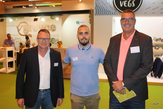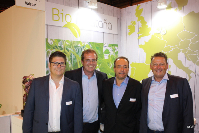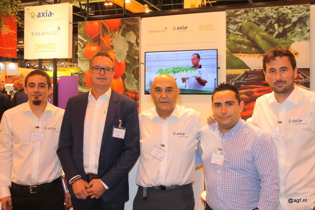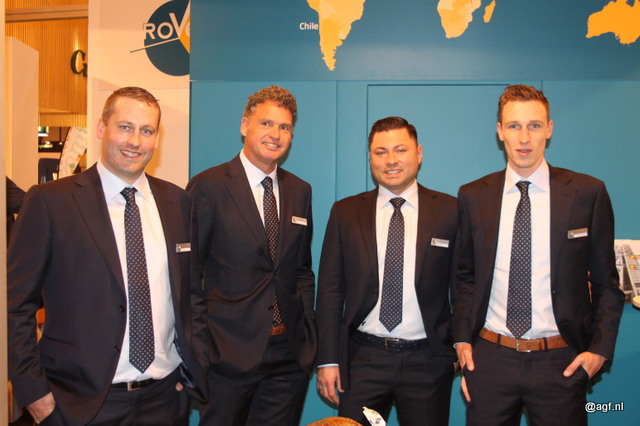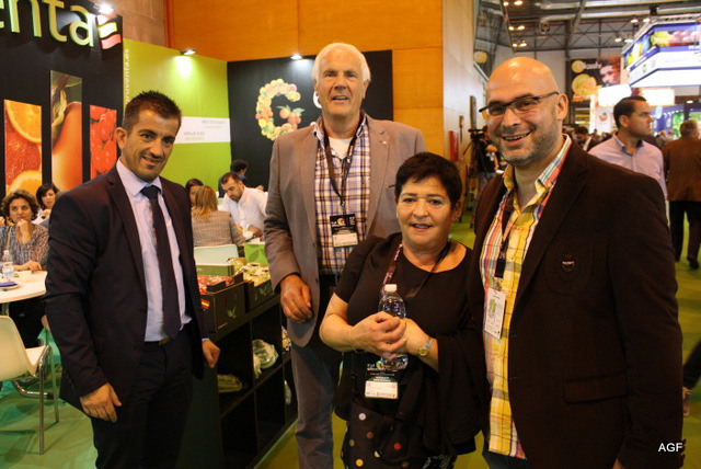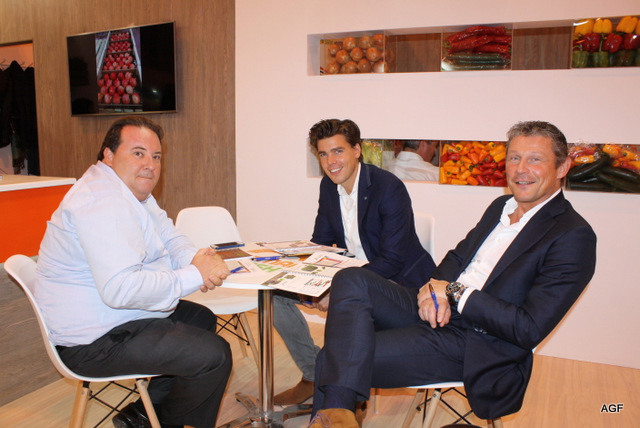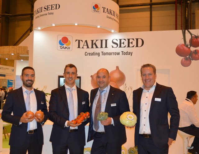 Takii Europe BV. Jaime Dols, Antonio Almodovar, Erik Vesseur en Chris Matthijsse. Takii staat voor de eerste keer op de beurs. Het bedrijf beschikt over vestigingen in Almeria en Murcia. Op de beurs werd het brede assortiment onder de aandacht gebracht. De Vuelta uien doen het goed op de Spaanse markt. Deze ui valt op door een mooie bruin gouden kleur en een lange bewaring. De ui is geschikt voor export vanuit Spanje naar Noord Europa. In Galia meloenen is een nieuw ras ontwikkeld: Cabal. Een productief ras met goede smaakeigenschappen en uitermate geschikt voor teeltgebieden in Murcia. Takii begeleidt telers, zij zorgen samen dat er een smaakvolle meloen beschikbaar is voor de consument.