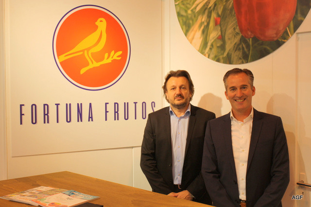 Stephane Rion en Marco Slobbe bij de gerestylde huisstijl van Fortuna Frutos. Het Canarische en Spaanse seizoen is weer afgetrapt.
