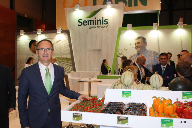 Nico van Vliet van Seminis/De Ruiter, dat deze beurs speciale aandacht had voor de cocktail pruimtomaat Strabena, de aspergebroccoli Bellaverde die jaarrond in Europa geteeld kan worden en de oranje paprika Quivon, waarmee ook in de winterperiode stoplichten te maken zijn.