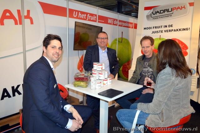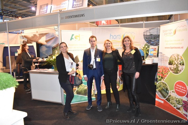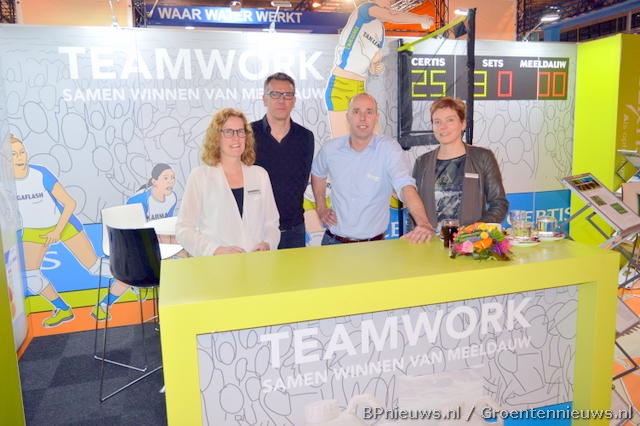 Hans Jaspers, Andreea Macelaru, Monika Keijzer en Vivian Christiaens waren in hun oranje outfits goed herkenbaar op de beursvloer.