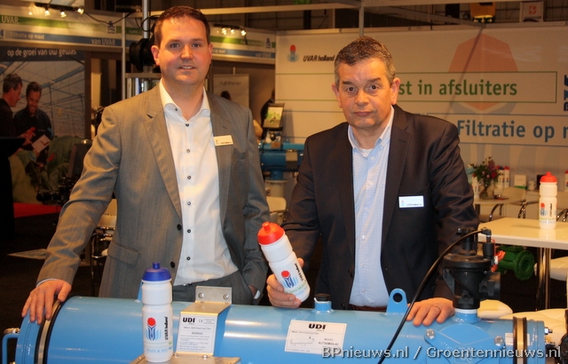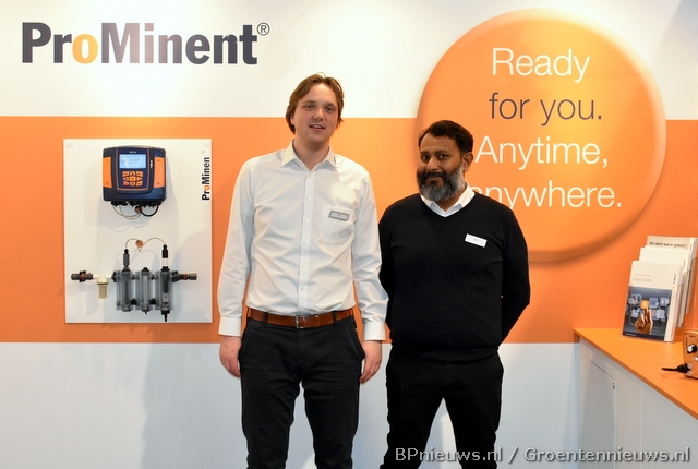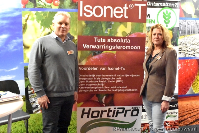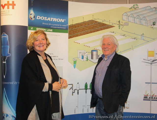 Hilde van Steijn (Dosatron) en Bert van Herwijnen (Veha plastics) deelden een stand.