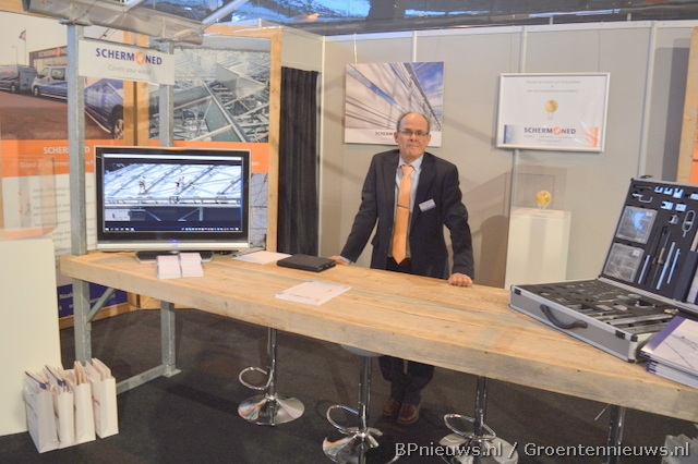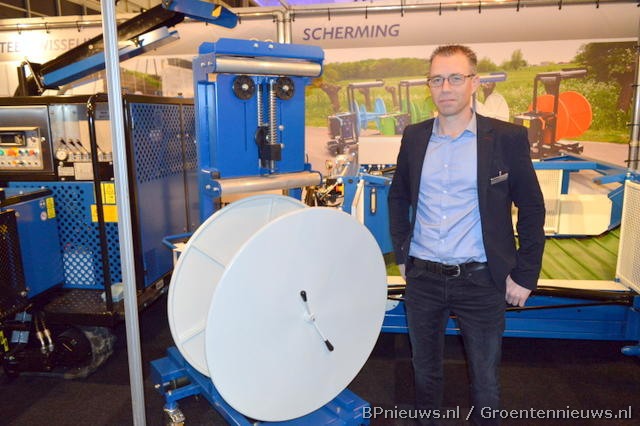 Rob van den Berg van Weterings staat bij hun krachtbegrenzer voor het intrekken van folie en schermdoek.
