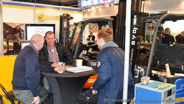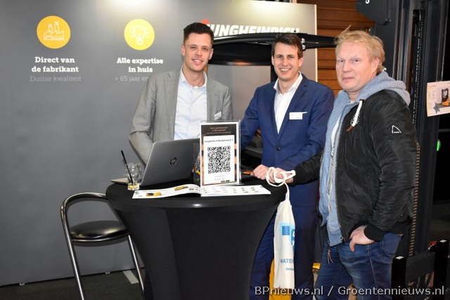 Ronald Luscuere (L. van Vliet Vorkheftrucks), Henk van Leeuwen (Nature's Alliance) en Koen van der Zwan in gesprek.