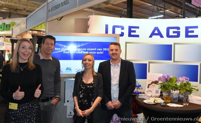 Sanne Stoop (ICE), Edwin Grootscholten (EG), Ronald van der Ende (EG) en Myra van der Plas (ICE) deelden een stand.