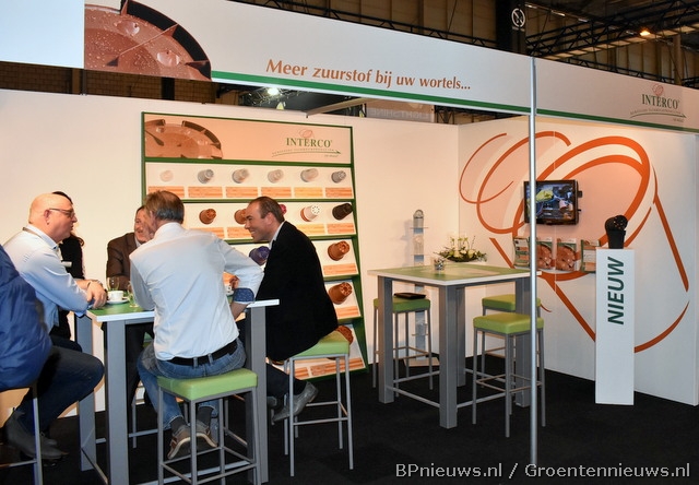 Geanimeerd gesprek in de stand van Interco.
