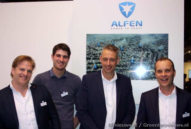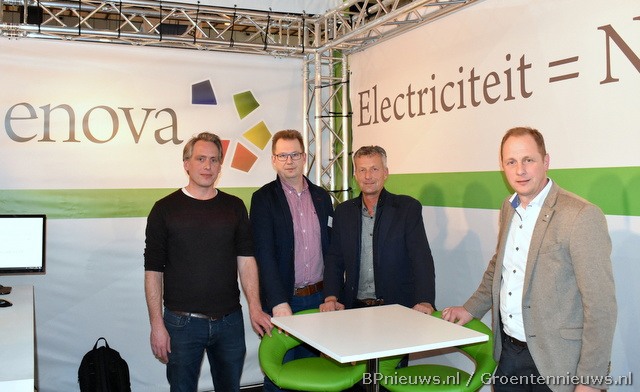 Bernard Bruins Slot, Ruben Tempel, Wibo Elzinga en Serge Kraaijeveld van Alfen hadden onder meer een batterijcontainer naar de beurs meegenomen.