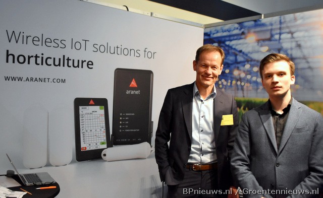 "Wij maken geen sensoren, wij maken sensoren draadloos." Bas Visser (R) met nieuwe collega Jan Kupers (L) stonden op de beurs voor AgriSensys."