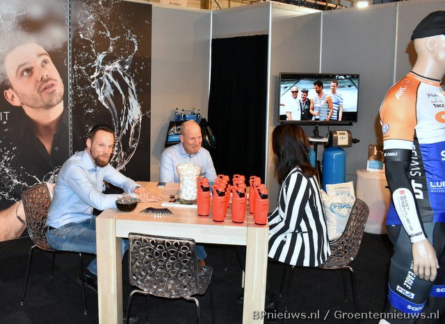 Pieter van der Beek en Rob Zwaard deelden bidons uit in de stand van UVAR.
