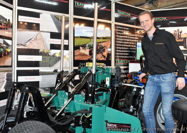 Pascal Machielsen toont trots het nieuwe, extra kleine kilverbord van Traycon.