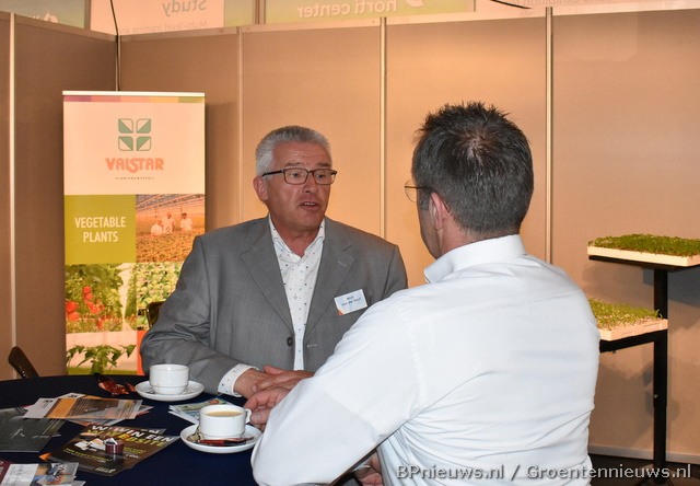 Arco van der Hout van Plantenkwekerij Valstar in gesprek met de overbuurman van Hatek.