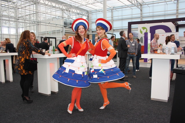 HortiHeroes Tineke Ogink en Caatje van Leeuwen stralen in hun 'netwerkjurken'.