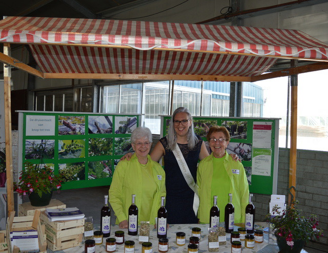 Druivenprinses Joyce van der Meer op de foto met de dames van de druivenstand