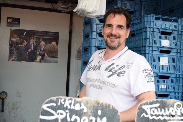 Van Wulgen Groente en Fruit staat 40 jaar op de Haagse markt. Hij is blij met koelcellen voor de AGF-kramen en vindt het geen probleem dat alle marktkramers daardoor dicht blij elkaar zitten.