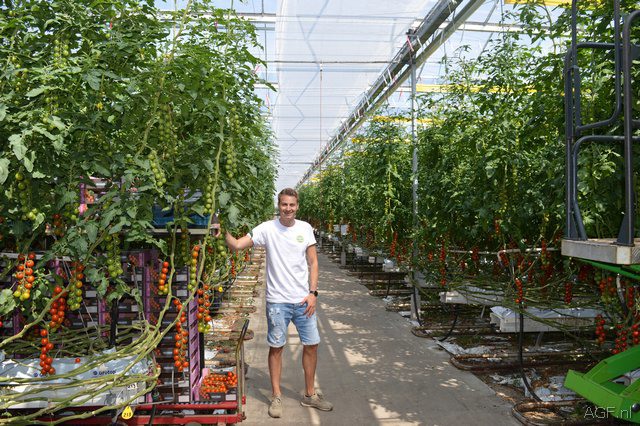 Tomaatjes proeven en tomatenplanten kijken in de schuur bij Prominentteler Robert van Koppen.