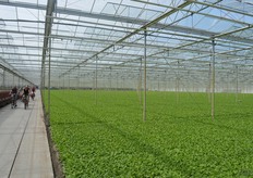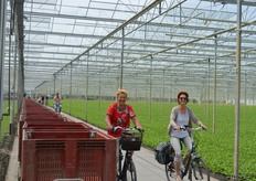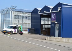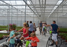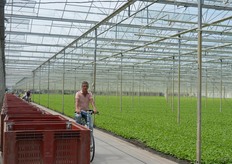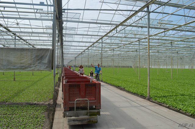 Een van de organisatoren, Rick van Koppen, in de kas bij Prominent. Voor de deelnemers bleef het vanwege hygiëne bij kijken vanuit de schuur.