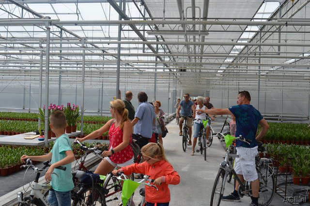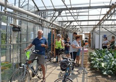Richard de Rijke van De Westlandse Bij gaf tekst en uitleg bij zijn strips in de kas van Kwekerij Dragontree.