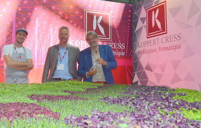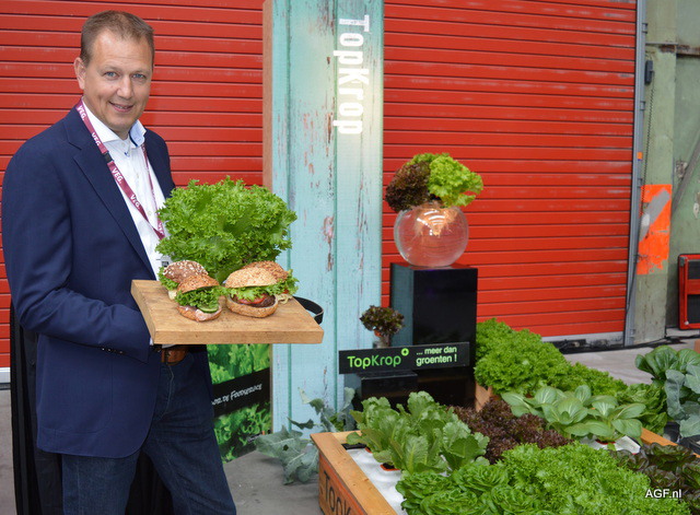 "Rechts Rob Baan van Koppert Cress. Hij is ervan overtuigd: "de tuinbouw is hofleverancier van gezondheid en is daarmee de apotheek van de toekomst"."