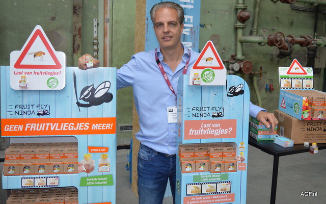 Fruit Fly Ninja, Olav van der Willik. 100% natuurlijke fruitvlieg killer.Ideaal om rond de fruitschaal of fruitafdeling te zetten in je winkel of supermarkt. Albert Heijn, Jumbo, Spar, Hanos en Sligro zijn gebruiker en verkooppunt van deze fruitvliegvanger.