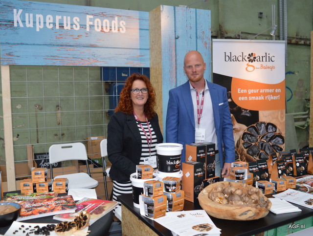 Anne Kuperis en Willy Sybesma van Kuperus Foods. Zij promootten de Black Garlic. Een gefermenteerde knoflook die lange tijd in de oven heeft gelegen. De knoflook is leverbaar in bollen, gepelde teentjes en puree. Zowel biologisch als conventioneel.