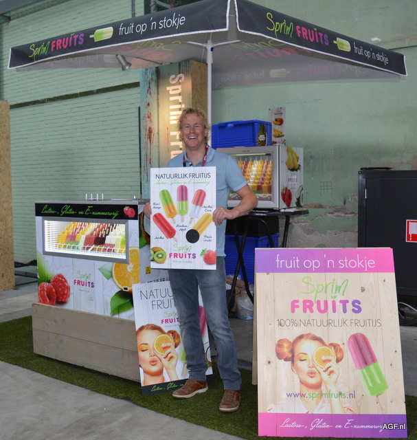 Bas Mooij van Sprim Fruits. Fruit op een stokje is een gezond alternatief voor het reguliere ijsje. Lactose, E-nummer en glutenvrij en bestaat voor 90% uit fruit.