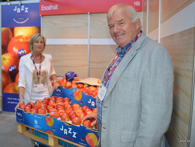 Enza promootte de Jazz. Ruiken, keuren en proeven van de nieuwe oogst appels van het Zuidelijk Halfrond. Tony Fissette en Greta Knapen.