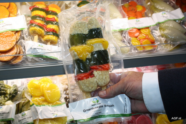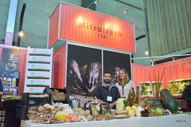 Kas Bahtiri en Laura van de Eijk van Mitrofresh. Dit bedrijf richt zich vooral op heel veel verschillende soorten paddenstoelen. Exoten worden steeds belangrijker, we zagen gember, sumsam, knoflookstengel, shayote, longan en nashiperen. Flavour Finest is de merknaam voor kleinverpakte paddenstoelen. Daarnaast worden onde de merknaam Oriental Greens Aziatische bladgroenten verkocht.