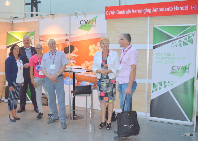 De groentespecialistenfamilie Bulters uit Haarlem puft uit bij de stand van ADN. Ze stonden in de file richting VEG. deden er ruim 2,5 uur over om VEG. te bereiken.