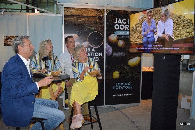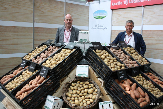 Kees Bijl en David Hage promoten de nieuwe aardappelen van Tholen. Sinds vorig jaar ook zoete aardappelen in het assortiment.