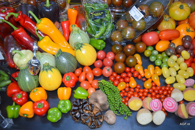Zoekplaatje: citroen tomaatjes, peertomaatjes, groene peperkorrels, bietjes in verscheiden kleuren en nog veel meer.