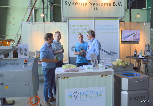 Gert Koekoek en André Weijmer van Groenteproductie Flevoland in gesprek met Jeroen Lijkendijk en Menno Jongsma van Synergy Systems. Synergy Systems levert naast de bekende Kronen machines ook Marco Integrated Weighing en Hitec Foodsystems machines.