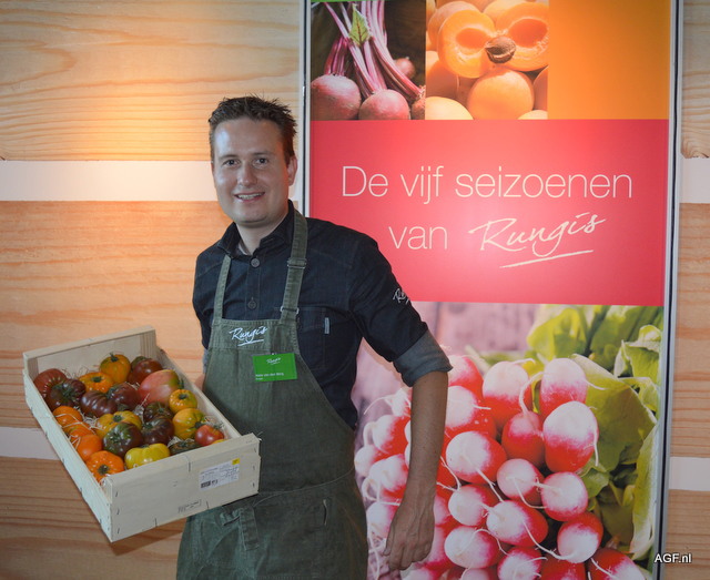 Niels van den Berg van Rungis toont Provence tomaten. Provence tomaten zijn tomaten die lang gerijpt zijn, waar de natuur z'n werk heeft kunnen doen.