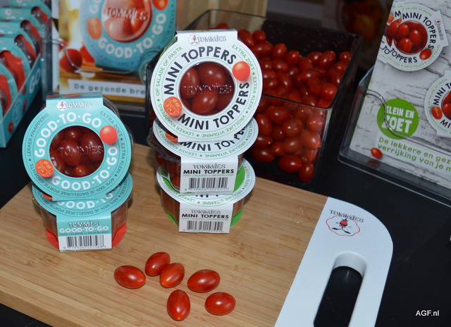 Rechts: Tommies 'Mini Toppers' voor de supermarkten. Daarnaast de 'Good to go' tomaatjes geschikt voor het ' out of home' kanaal.