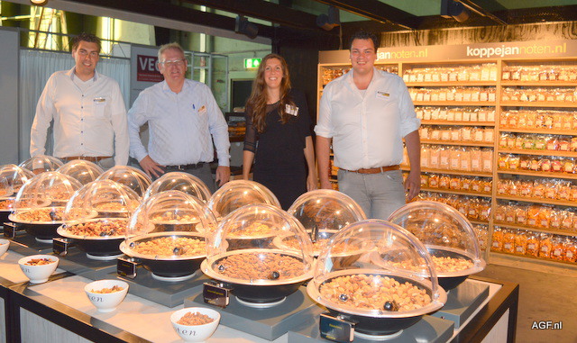 Marijn Koppejan, Dries Gosseling, Clarina Oosterbroek- Koppejan en Mattheo Koppejan. Een familiebedrijf waar kwaliteits- noten en gedroogde zuidvruchten verhandeld worden.