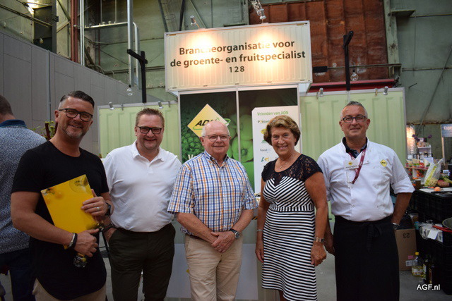 Groentespecialist Louis Maas kom je ook overal tegen, hier met Teun van Rosmalen van Gebrs van Aarle
