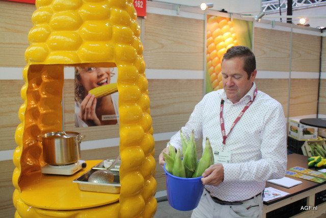 "Twee uur de suikermais in de emmer en dan stoomt' ie gaar op de grill", legt Giel Hermans uit."