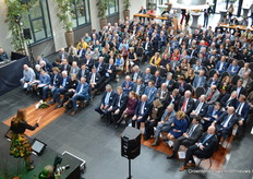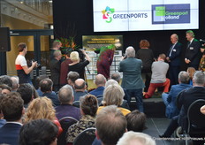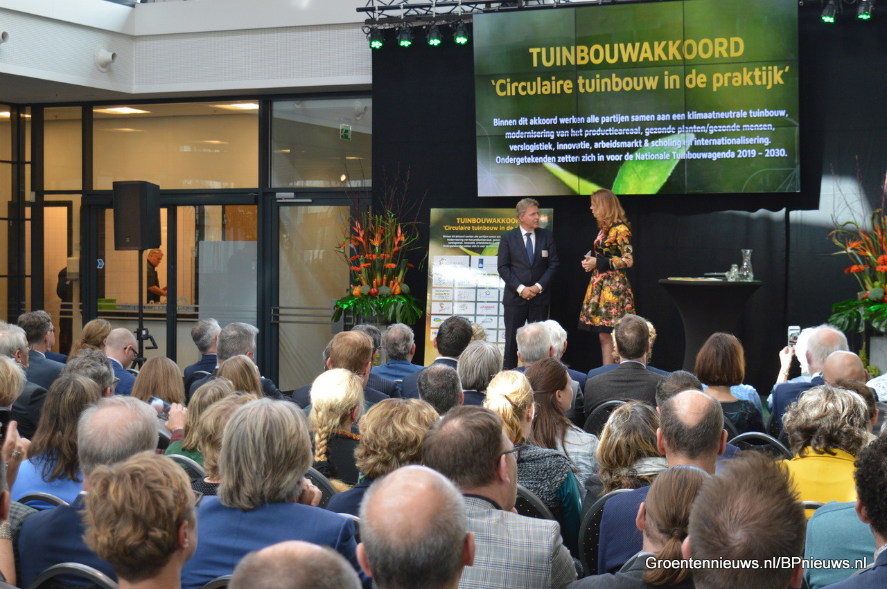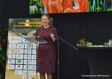 "Jullie zijn een makkelijke sector voor mij", grapt Carola Schouten tijdens haar openingsspeech, "want jullie houden vaak je eigen broek al op. Dat is makkelijk voor een minister. De tuinbouwsector", weer serieus, "wordt gekenmerkt door een echte hands-on mentaliteit".