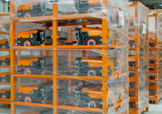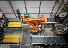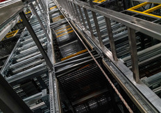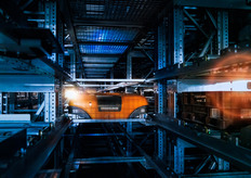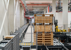 Op de begane grond, in de grote witte loods achter het Experience Center, wordt door Vanderlande nog steeds hard gewerkt aan het vrijwel volledig geautomatiseerde magazijn.